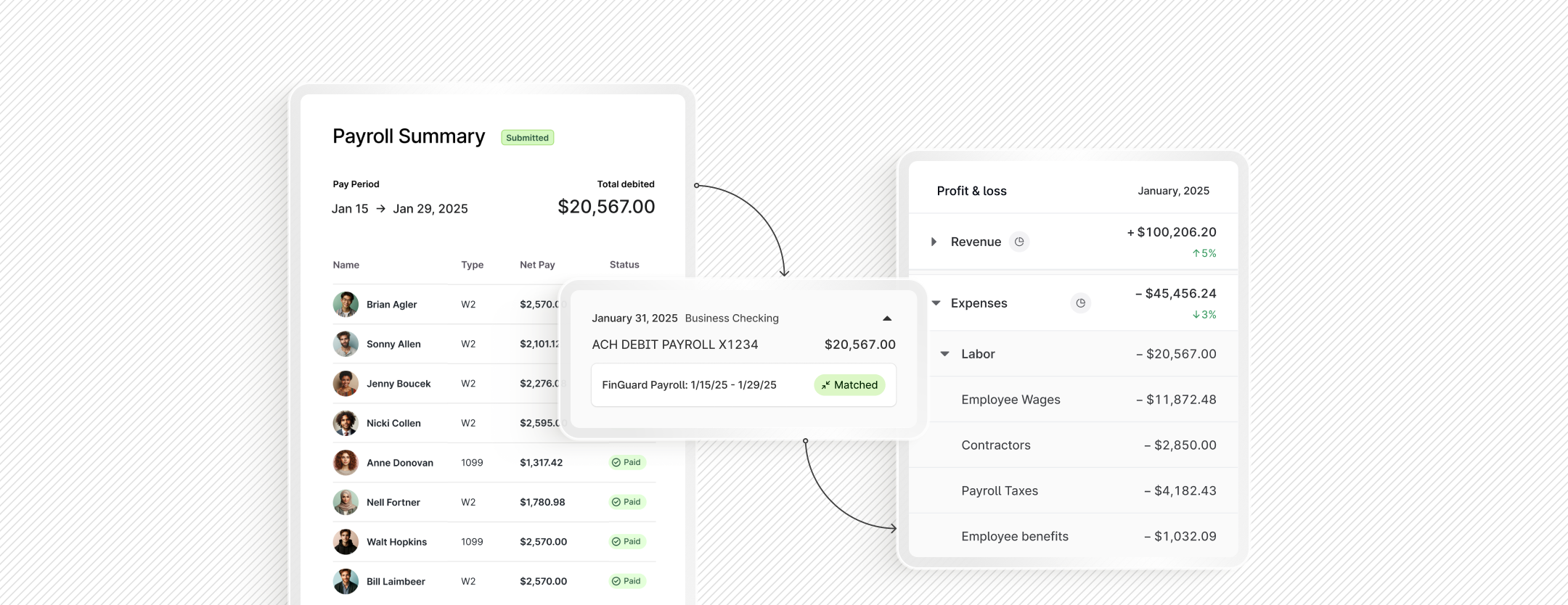 For businesses with employees, recording payroll activity can be one of the most challenging aspects of accounting. Payroll is often one of the largest recurring expenses for a business each month. Connecting payroll and accounting directly gives businesses real-time, granular visibility into labor costs alongside the rest of their business finances. Rather than juggling data exports and manual workflows, employers can rest assured knowing their payroll accounting is always up-to-date, categorized, and reconciled.